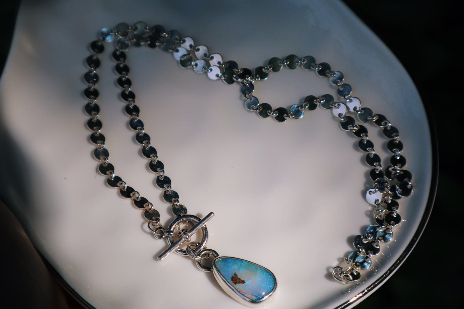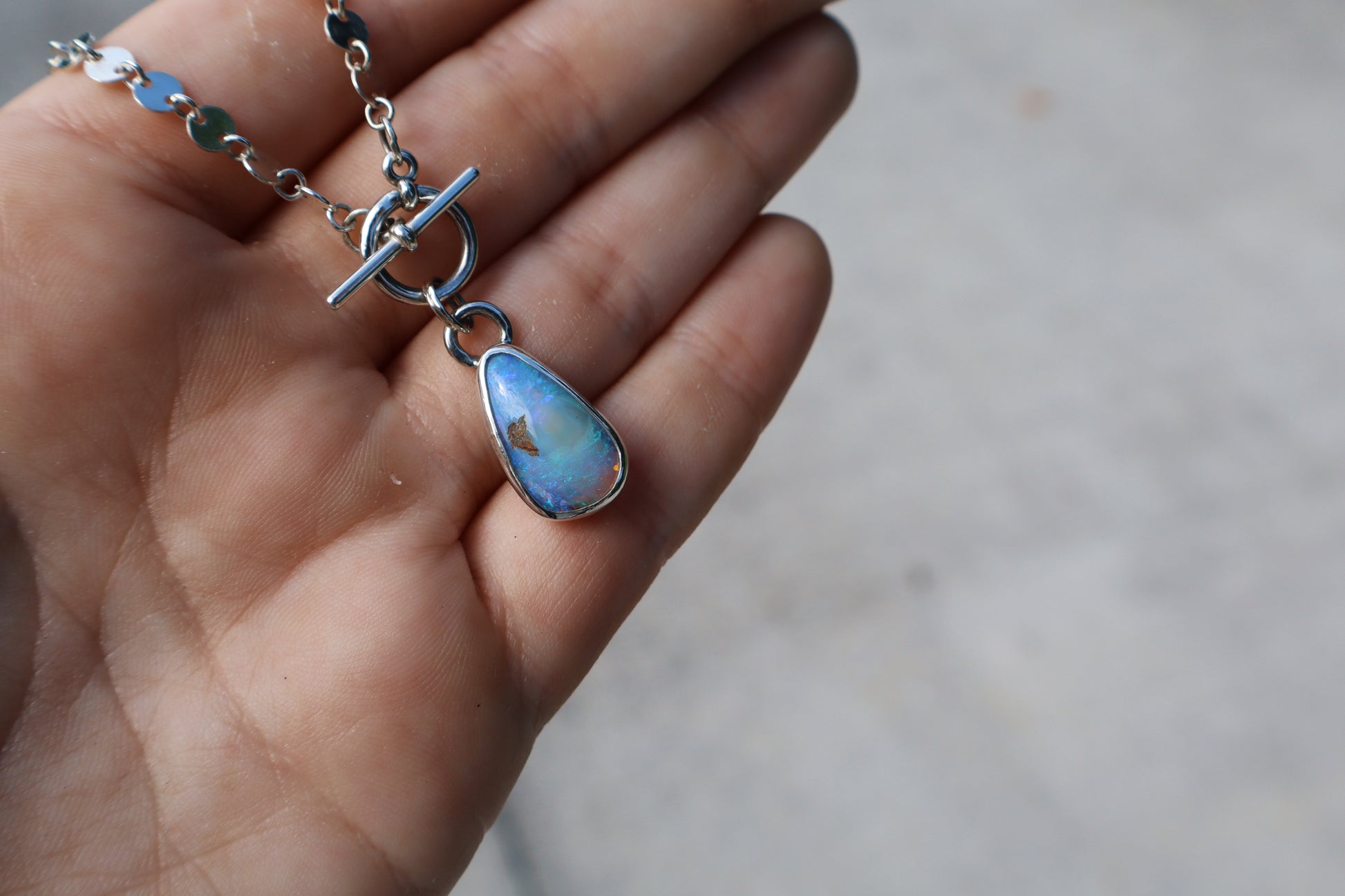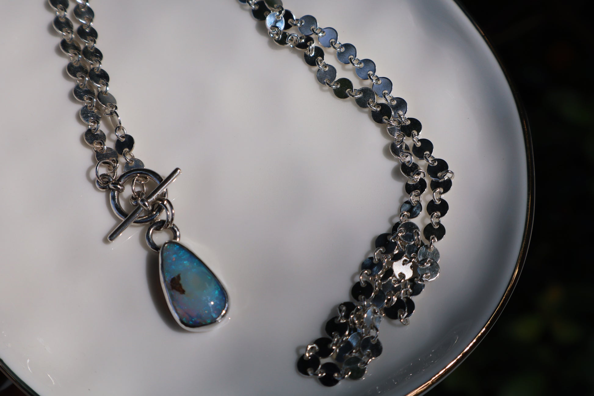 Crystal Blue purple and pink opal toggle necklace. 18in