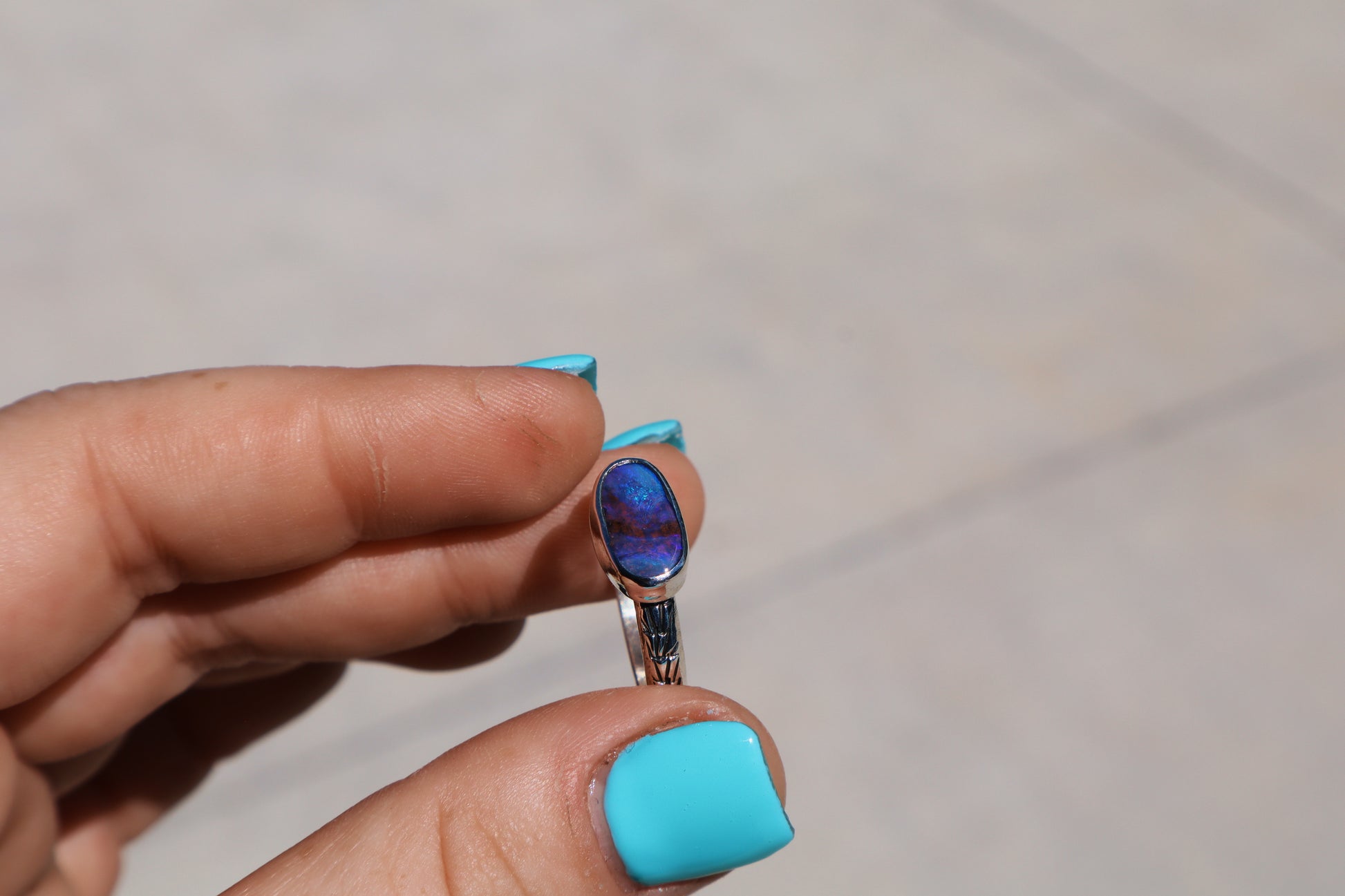 This absolutely stunning opal is set on my "fishtail" hand stamped band.