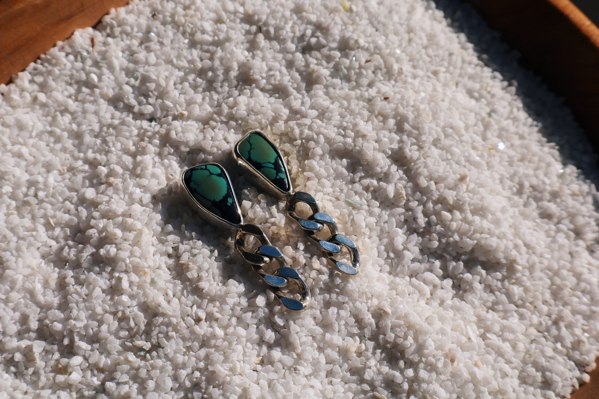 These are top grade and ethically sourced Qingu turquoise with vibrant green and earthy tones!