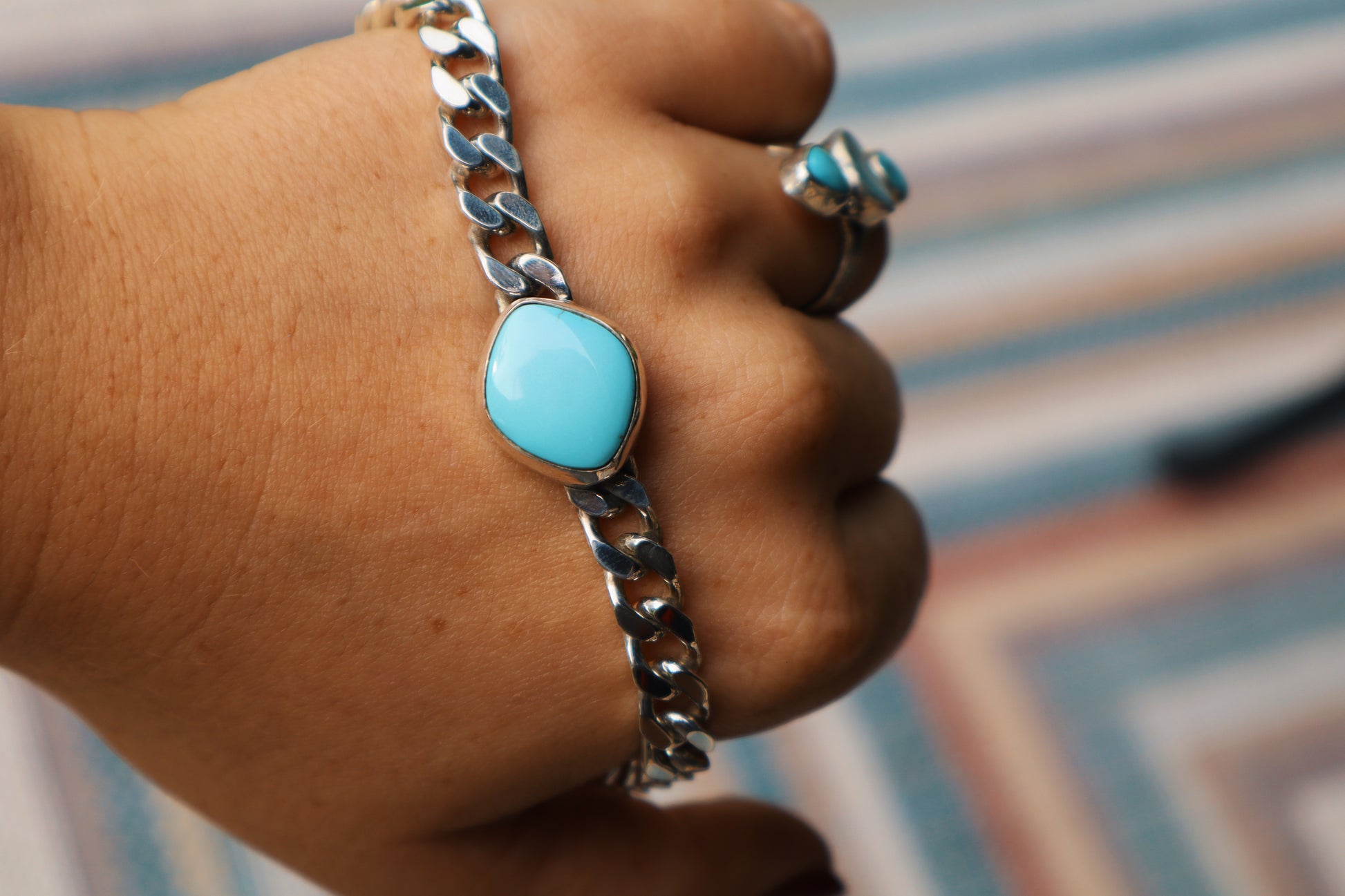 Royston top grade icy blue curb chain bracelet, 7mm thick, 6.75in long
