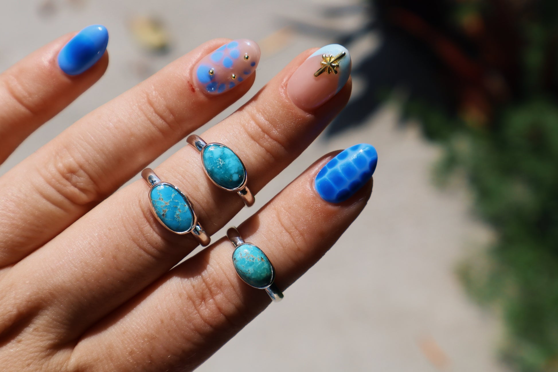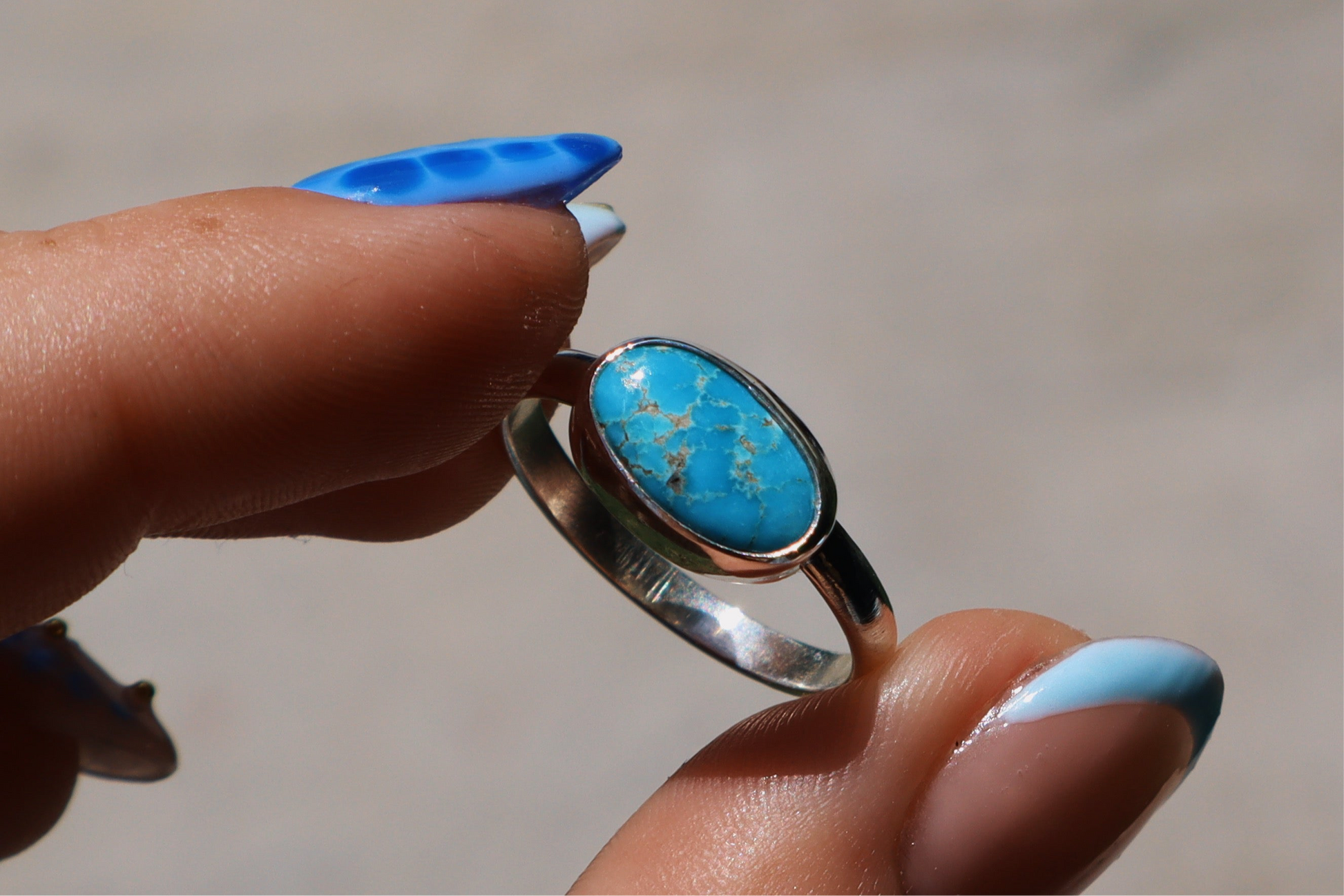 This ring is a size 7, can be sized up one full size with a hammered texture